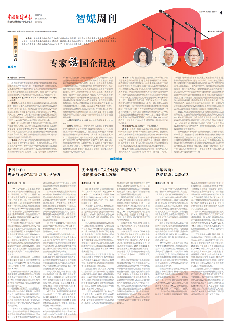 来源:中国经济时报、中国巨石 发布时间:2023-07-036月26日,《中国经济时报》“智媒周刊”聚焦国企混改,通过专家解读和企业案例呈现当前改革成效,并分析下一步深入推进国企混改的着力点 天堂影视,重点报道了中国巨石将国企优势和民企的活力转换为混改企业的竞争力,小料现将内容分享给大家。